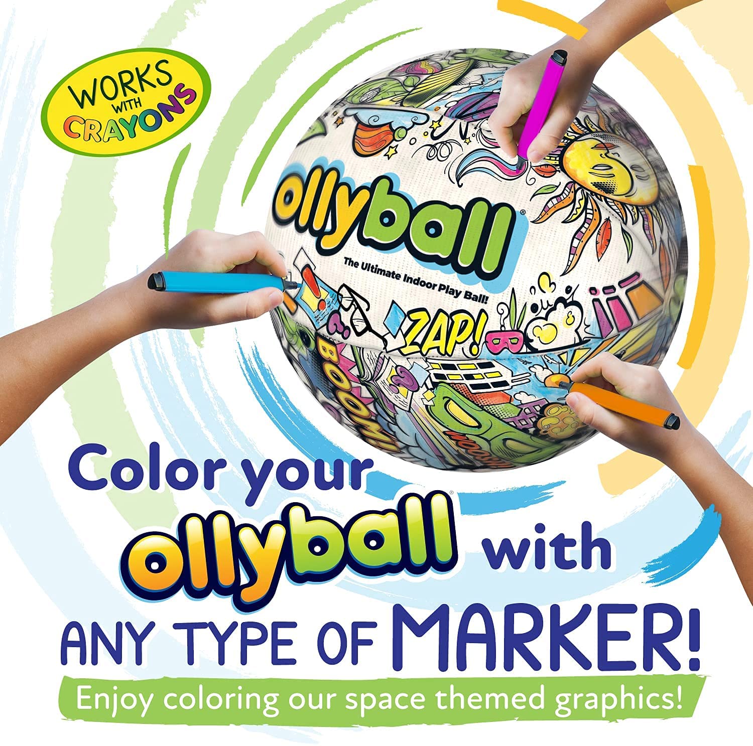 With its durable waterproof shell, the Peppa Pig Ollyball is built to withstand all kinds of games. Color in your Ollyball with washable or permanent markers to customize it with your favorite Peppa Pig characters like Peppa, George, or Suzy Sheep! Made from a sustainable, up-cycled material, this eco-friendly toy makes playtime enjoyable and responsible.